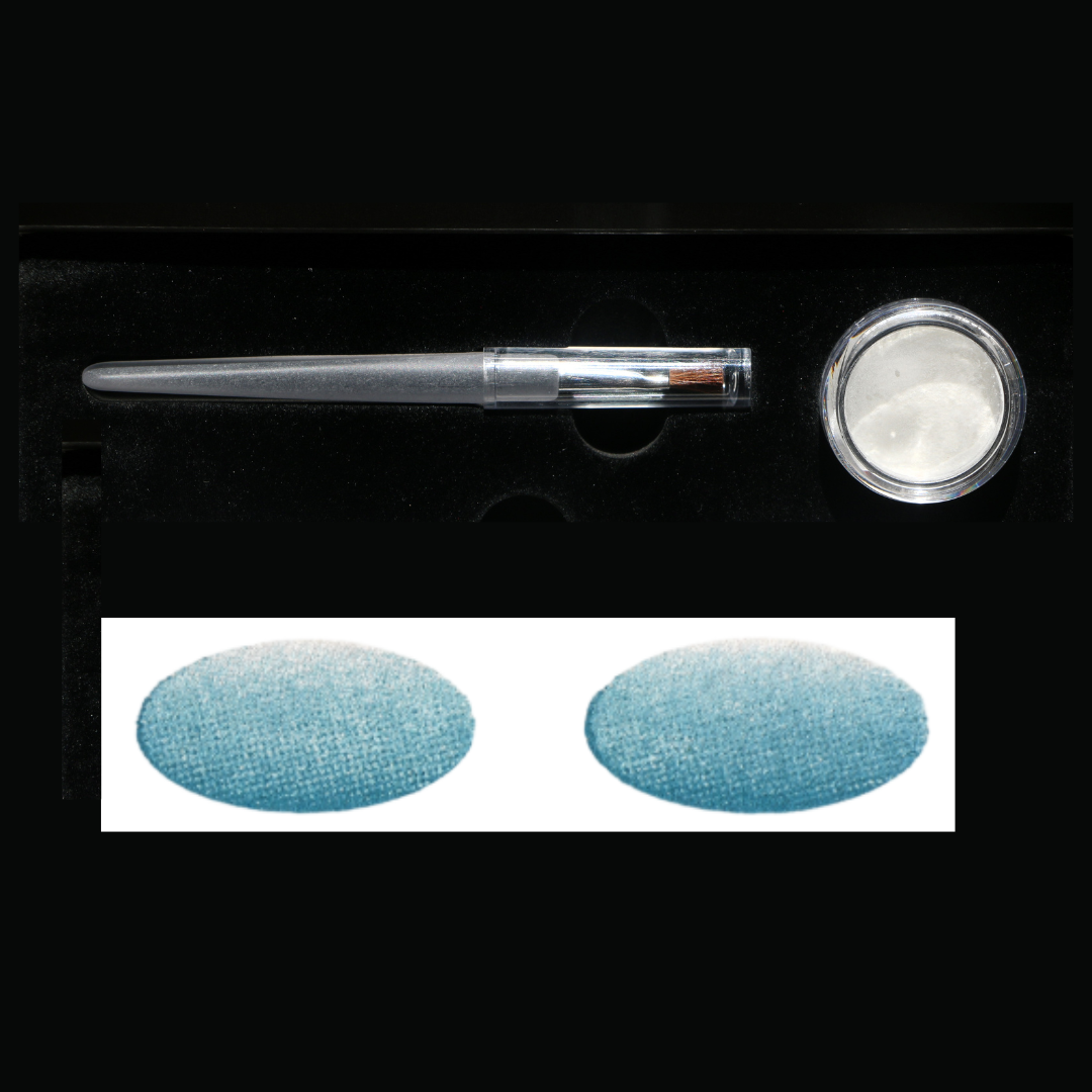 6️⃣ Use setting powder (included) to lightly dab powder over the eyeshadow (this is what seals the design and makes it sweatproof, smudgeproof, and last 8+ hours)